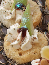 CANAPÉS CON CREMA DE MANCHEGO. FLORES DE JAMÓN SERRANO Y PESTO DE ALBAHACA Y MEREY